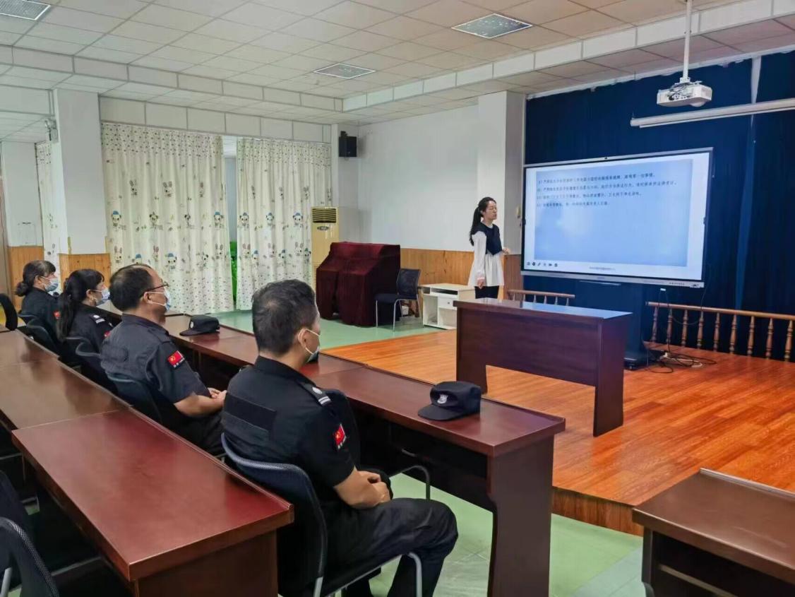 安保是幼儿园第一道安全大门,是安全工作的重中之重。为了进一步加强幼儿园的保安防范工作,切实保障师幼安全和园所稳定,2023年9月23日,对我园保安开展了门卫安全教育培训活动。