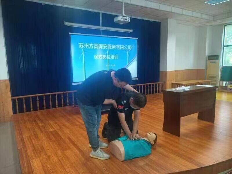 本次培训对幼儿园门卫安全岗位工作职责进行了逐条逐字地讲解,强调幼儿园门卫安保人员的重要职责就是维护幼儿园园所安全,保障师幼人身安全,要求保安师傅落实好幼儿园的每一步安全工作职责,责任到人。另外进行了急救技能的培训,重点介绍了心肺复苏的基本急救技能,全体保安进行了实操练习。